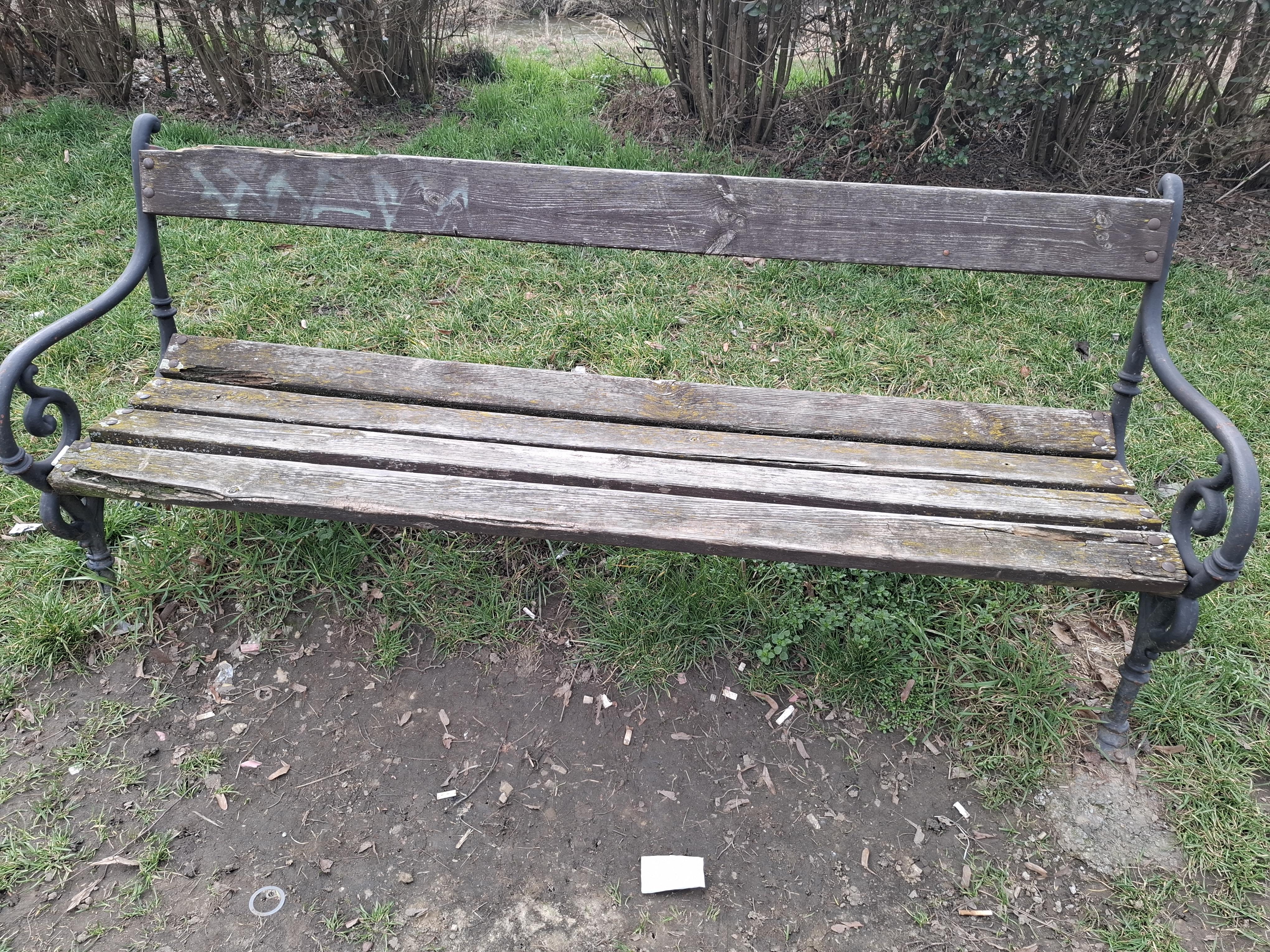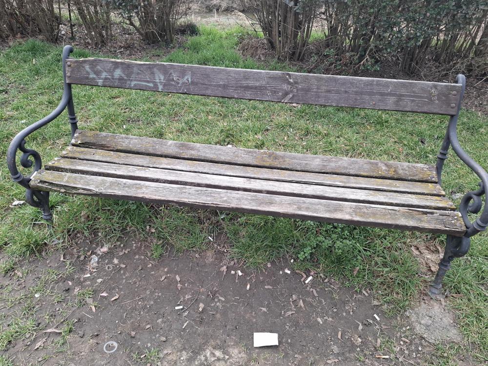Megoldási javaslat: A sérült lécek és rossz csavarok cseréje, és az egész pad festése